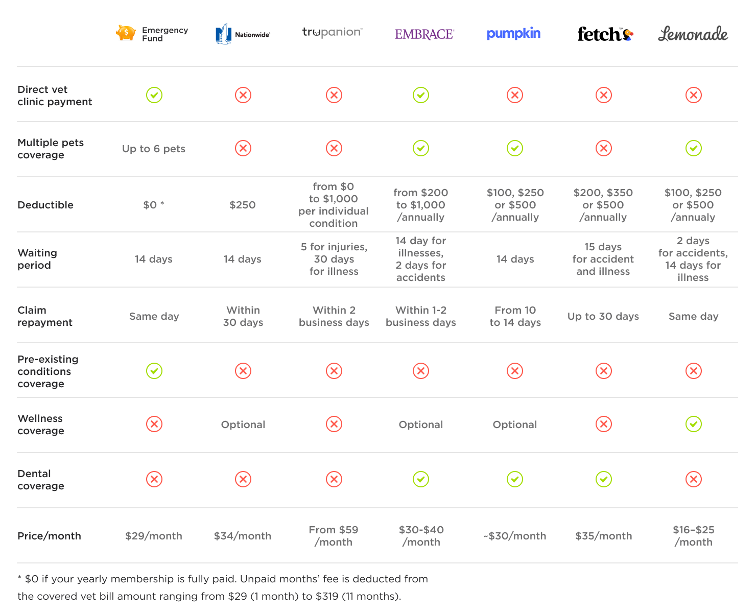 - Premiums may be more than what you currently are paying for vet care.